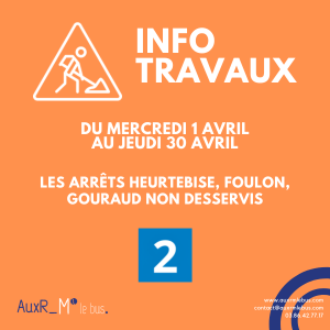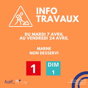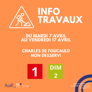 Lire l'actualitéA partir de ce mardi 7 avril, les lignes 1 et DIM2 seront perturbées par des travaux.